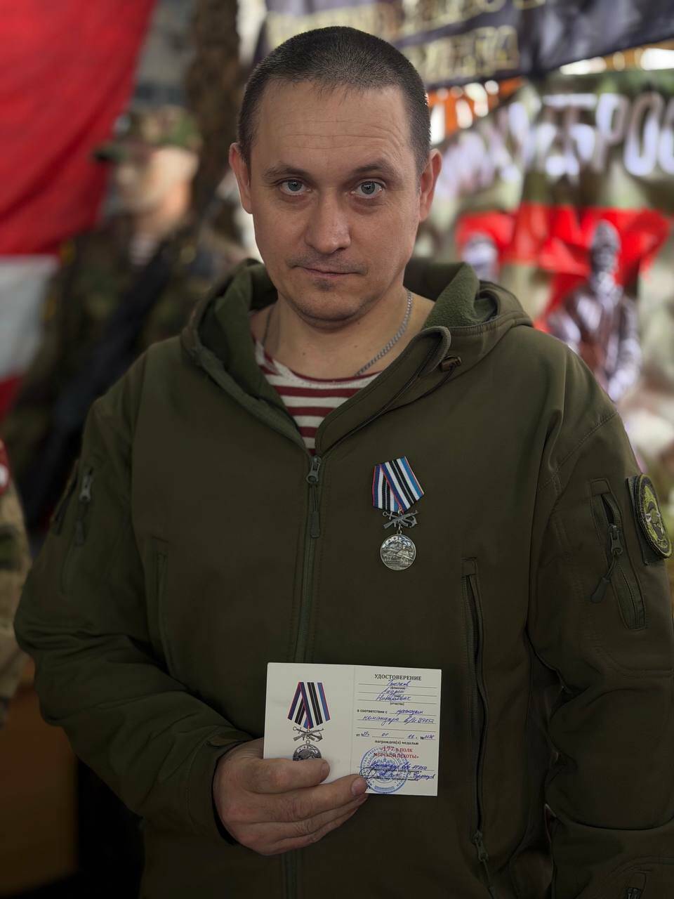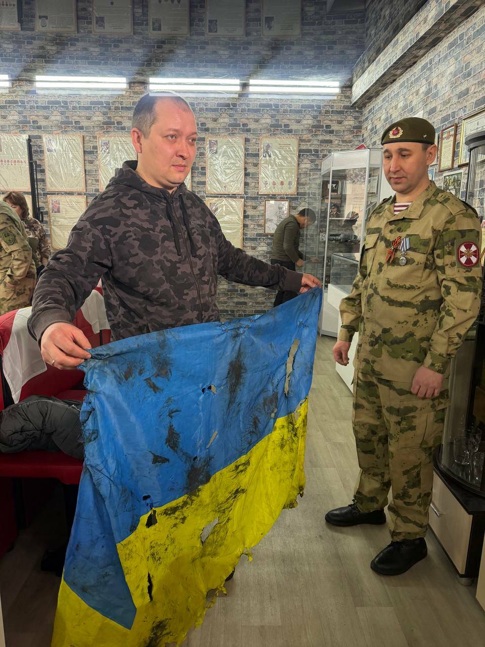 «В благодарность за помощь морпехи 177-го гвардейского полка передали в музей внутренних войск флаг поверженного врага. При взятии Покровска, посёлка Новый-Экономика, они захватили ротный командный пункт противника, уничтожили врага и взяли их трофеи», – отметил он.