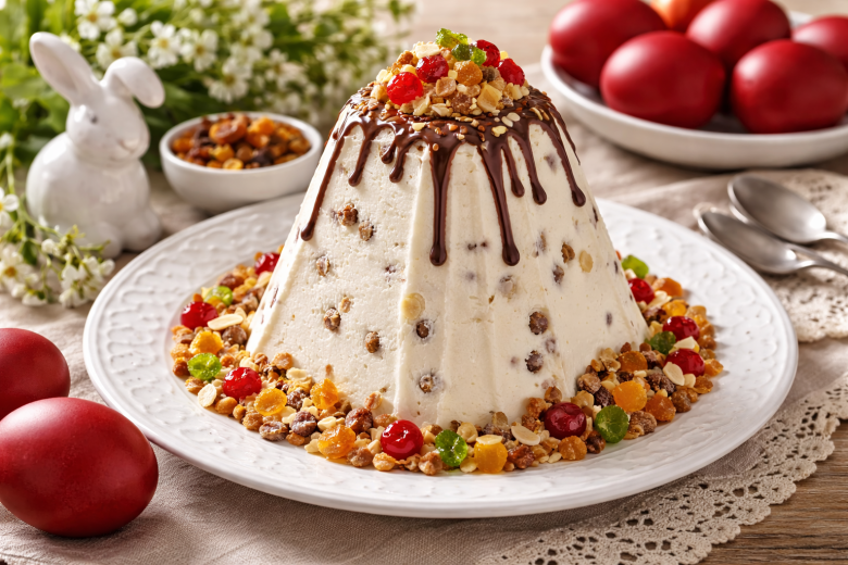 Если хочется настоящую праздничную пасху, но без тяжёлой масляной текстуры, есть отличный вариант. Эта «Королевская» получается нежной, воздушной и держит форму благодаря сливкам и желатину — без лишней жирности, но с тем самым богатым вкусом.