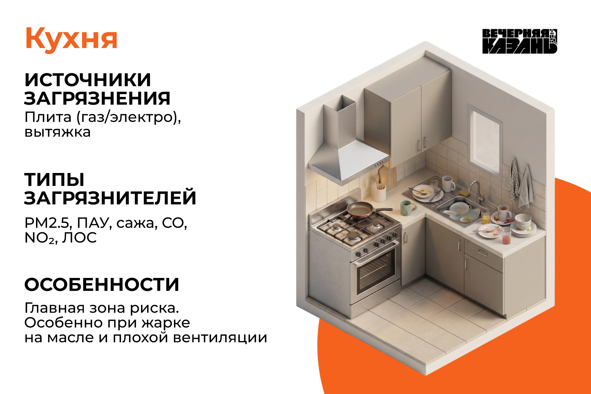 - Сотрудники кухни и домохозяйки – загрязнители выделяют и продукты сгорания, и сама еда. Напрмиер, микрокапли жира, образующиеся при готовке, тоже являются загрязнителями воздуха.