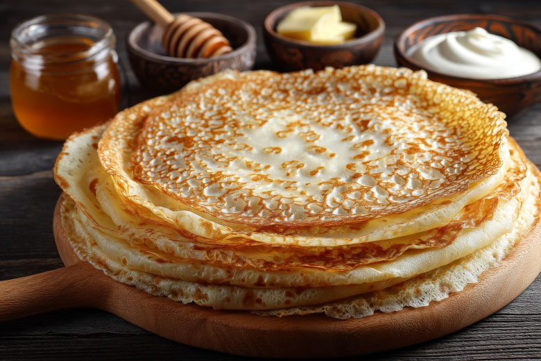 Беру ряженку, яйцо и муку — готовлю блины, от которых невозможно оторваться. Это гениально просто: кисломолочная основа даёт ту самую воздушную текстуру и лёгкую кислинку. Получается настоящее съедобное кружево: каждый блин — это ажурное полотно с хрустящим, изящно подрумяненным краем и нежной, бархатистой серединкой. Они невероятно ароматные, с лёгким карамельным оттенком от ряженки, и тают во рту.