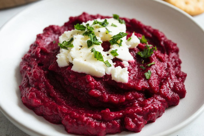 Для приготовления вам понадобится: 300 г запечённой или варёной свеклы, 150 г рассольного, козьего или сливочного сыра (можно их смесь), 30 мл бальзамического уксуса, 30 мл оливкового масла. По желанию добавьте зубчик чеснока, травы или перец. Нарежьте свеклу крупными кусками, отправьте в блендер вместе с сыром, уксусом и маслом. Измельчите до однородной кремовой массы. Подавайте с тостами, хлебцами или овощами.