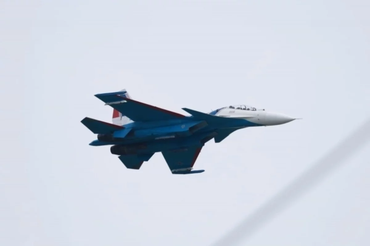 Российские тяжелые бомбардировщики сопровождали истребители Су-35 из состава знаменитой пилотажной группы «Русские витязи».